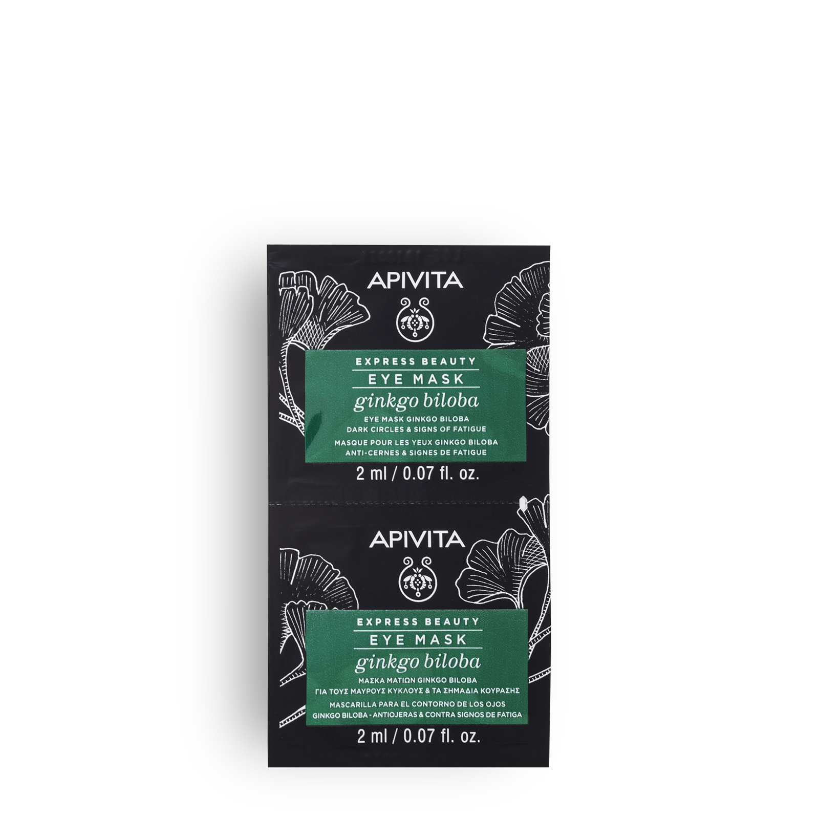 Η μάσκα ματιών EXPRESS BEAUTY με ginkgo biloba, το πιο παλιό δέντρο στον κόσμο, γνωστό και ως «βότανο της μνήμης» καταπραύνει και αντιμετωπίζει τα σημάδια κούρασης στην περιοχή γύρω από τα μάτια.Απαλύνει την εμφάνιση των μαύρων κύκλων και μειώνει τα σημάδια κούρασης χάρη στο gingko bilobaΕνυδατώνει και αναζωογονεί την ευαίσθητη περιοχή γύρω από τα μάτια χάρη στο αγγούρι και στο υαλουρονικό οξύΚαταπραΰνει τα κουρασμένα μάτια με χαμομήλι, βισαβολόλη και πανθενόληΠροσφέρει ήπια αντισηπτική δράση χάρη στην πρόποληΤο νερό της σύνθεσης έχει αντικατασταθεί με ένα αντιοξειδωτικό έγχυμα από 3 είδη σιδερίτη.