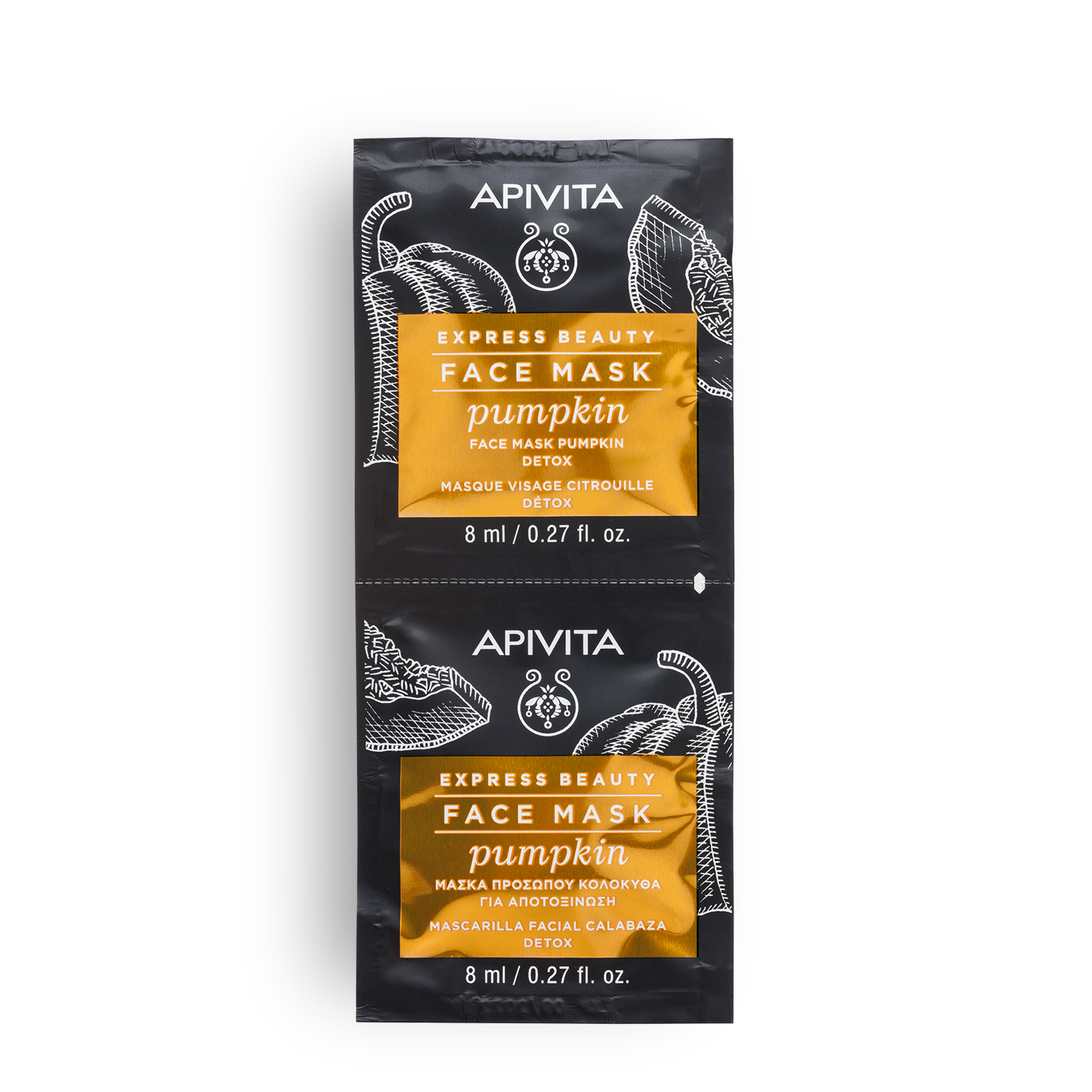 Η μάσκα προσώπου EXPRESS BEAUTY με κολοκύθα, το πιο αγαπημένο φθινοπωρινό λαχανικό των περιοχών της Μεσογείου γνωστό για την αποτελεσματικότητα του σε δίαιτες αποτοξίνωσης, είναι ιδανικό για την αποτοξίνωση της επιδερμίδας.Απολεπίζει απαλά και απομακρύνει τους ρύπους και τα νεκρά κύτταρα προσφέροντας φωτεινή επιδερμίδα με ομοιόμορφη όψη χάρη στα ένζυμα κολοκύθαςAπορροφά το περιττό σμήγμα μειώνοντας την όψη των διεσταλμένων πόρων με λευκή άργιλοΔιατηρεί την επιδερμίδα ενυδατωμένη, λεία και απαλή με λάδι από σπόρους κολοκύθας, βούτυρο καριτέ, ελληνικό θυμαρίσιο μέλι και υαλουρονικό οξύΤονώνει και αναζωογονεί την επιδερμίδα με αιθέρια έλαια λεμόνι και ginger