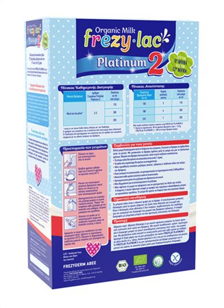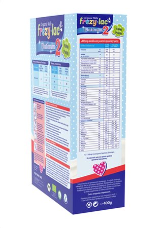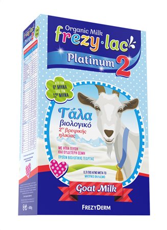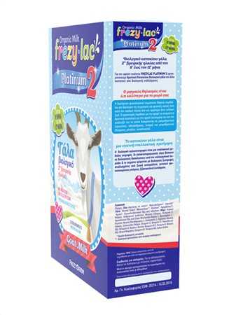 Το FREZYLAC PLATINUM 2 είναι βιολογικό κατσικίσιο γάλα σε σκόνη, κατάλληλο για βρέφη από τον 6° μήνα στο πλαίσιο μιας μεικτής διατροφής.Βασισμένο στις αρχές της βιολογικής εκτροφής αιγών και τους Κανονισμούς της Ε.Ε. που διέπουν τα παρασκευάσματα για βρέφη και τα παρασκευάσματα δεύτερης βρεφικής.Περιέχει πρωτεΐνες με χαμηλό ποσοστό άλφα S1- καζεΐνης καθώς και με μεγάλα μυκήλλια καζεΐνης, βιταμίνες, μέταλλα, υδατάνθρακες, ιχνοστοιχεία, κορεσμένα και πολυακόρεστα λιπαρά οξέα, DHA (όπως απαιτείται από τη νομοθεσία για όλα τα παρασκευάσματα για βρέφη), ARA, ω-3 και ω-6 λιπαρά οξέα και υψηλά ποσοστά βραχείας και μέσης αλύσου λιπαρά οξέα (SCFA, MCFA).- Με ήπια γεύση και ουδέτερη οσμή- Χωρίς GMO (γενετικά τροποποιημένους παράγοντες)- Χωρίς γλουτένη- Συσκευασμένο σε προστατευτική ατμόσφαιρα*Το μητρικό γάλα είναι η ιδανική τροφή για τα βρέφη. Ο αποκλειστικός μητρικός θηλασμός κατά το πρώτο εξάμηνο της ζωής είναι ιδανικός για το μωρό σας. Όταν ο θηλασμός είναι αδύνατος ή δεν επαρκεί συμβουλευτείτε τον παιδίατρο για την εισαγωγή στη διατροφή του μωρού σας βρεφικού γάλακτος. Η έναρξη διατροφής με μπιμπερό μπορεί να έχει αρνητικές επιπτώσεις στο θηλασμό.Δείτε εδώ τον Πίνακα Καθημερινής Διατροφής και Ανασύστασης του FREZYLAC PLATINUM 2Δείτε εδώ χρήσιμες συμβουλές και σημαντικές πληροφορίες για τους γονείς