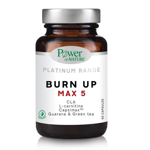 To BURN UP MAX 5 αποτελεί ένα συνδυασμό θρεπτικών συστατικών με L-καρνιτίνη, συζευγμένο λινολεϊκό οξύ (CLA), εκχυλίσματα γκουαράνα, πράσινου τσαγιού και κόκκινης πιπεριάς, νιασίνη και βιταμίνη Β6. Η νιασίνη και η βιταμίνη Β6 συμβάλλουν στη φυσιολογική λειτουργία των μεταβολικών διεργασιών που αποσκοπούν στην παραγωγή ενέργειας, ενώ επιπλέον η βιταμίνη B6 συμβάλλει στο φυσιολογικό μεταβολισμό των πρωτεϊνών και του γλυκογόνου.