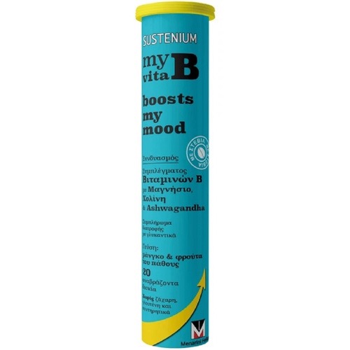 ο SUSTENIUM My Vita B Boosts My Mood αποτελεί μια ενισχυμένη φόρμουλα με φυτικά εκχυλίσματα και βιταμίνες του συμπλέγματος Β, όπως Β6, που συμβάλλει στην ψυχική υγεία του οργανισμού, Χολίνη, και βιταμίνες Β1, Β2, Β3, Β6, Β7, Β12 που συμβάλλουν στη φυσιολογική λειτουργία του νευρικού συστήματος.